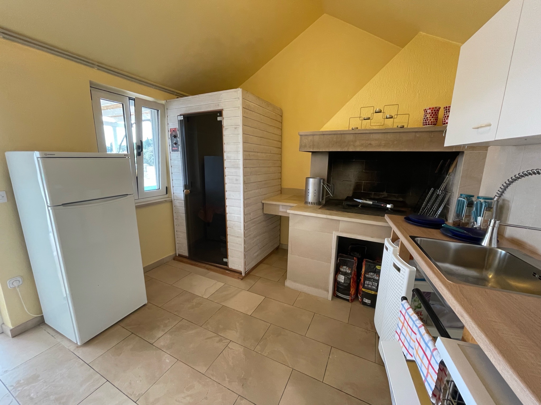 Der vorhandene Kühlschrank mit Gefrierfach erweitert die Konoba ideal zur Lagerung von kalten Getränken und Speisen in der Nähe des Pools. Wie in jeder voll ausgestatteten Küche ist auch die Spülmaschine und Waschmaschine vorhanden.