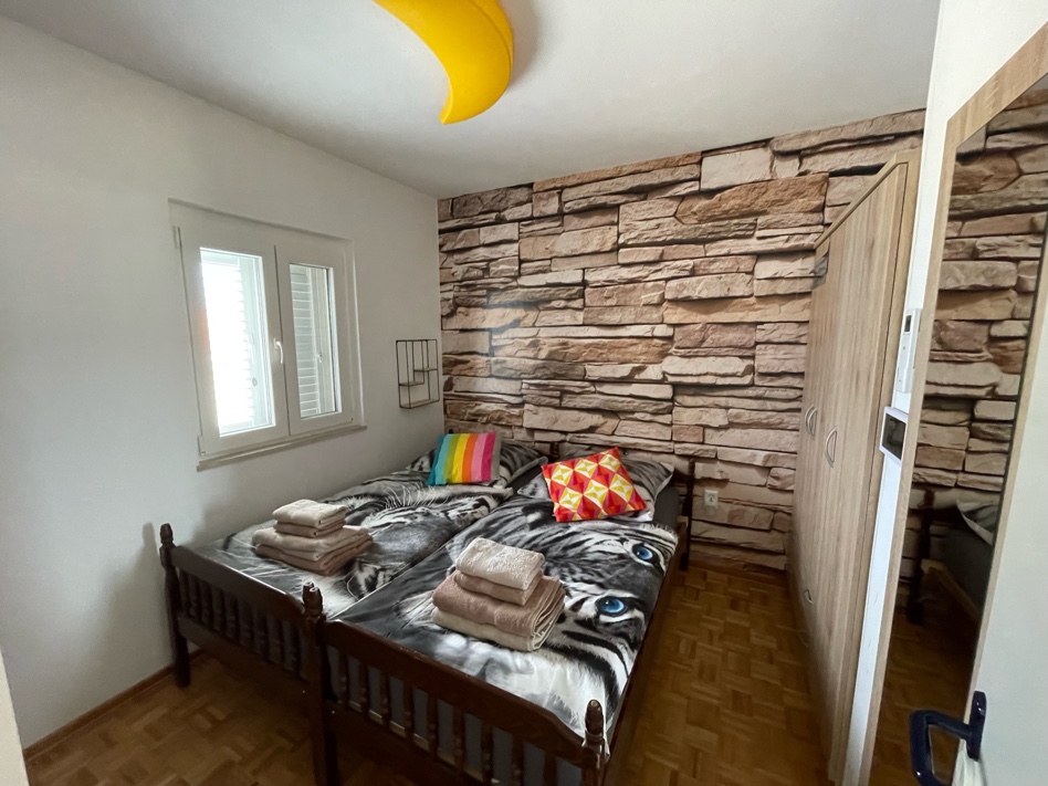 Das Kinderzimmer verfügt über zwei Betten mit den Maßen 90x200cm, die auch zusammengestellt werden können und Platz für 2 Personen bieten. Der Raum ist voll klimatisiert.
